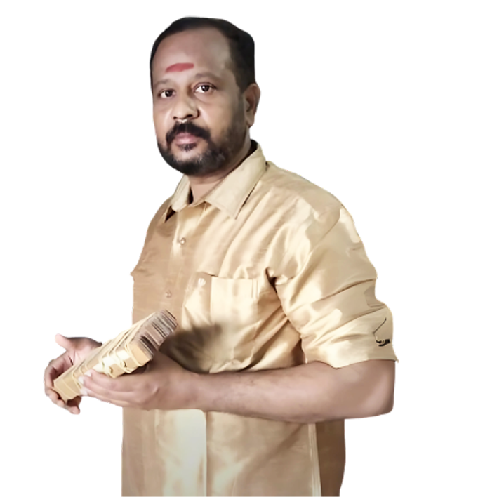 Our platform is led by Mr. v.r.Muthukumarasamy, a highly revered Naadi astrologer with over 30 years of experience in this mystical science. Born and raised in Vaithiswarankoil—the divine birthplace of Naadi astrology—he upholds a powerful legacy passed down through generations of sages who inscribed destinies on sacred palm leaves.